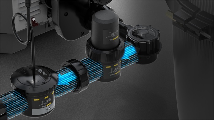 1. TruClear® Salt Chlorinator: This salt chlorinator is simple and reliable. It’s energy-efficient and works at extremely low flow rates, meaning the chlorinator is completely compatible with variable-speed pumps. It’s easy to install, and when paired with the iAquaLink® app, you can control it with your smartphone.